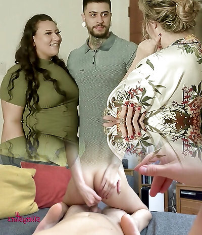 Cumming Together: Big Ass BBW Fucks Both Men in Cozy Living Room Conversation