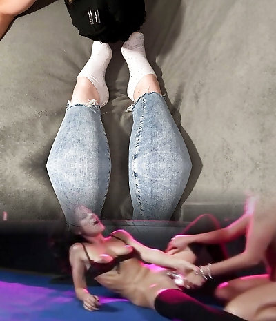 Femdom Steps on Slave with Brunette Domination