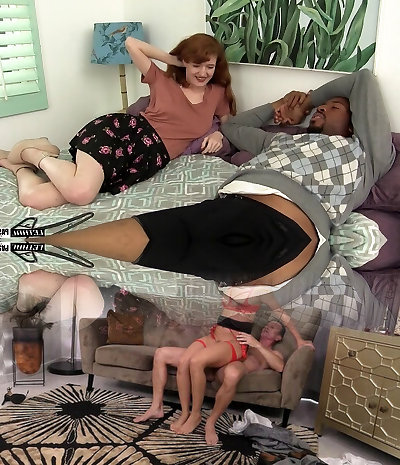 Horny Interracial Threesome with Blonde Teen's Shaved Pink Pussy Getting Banged by Big Black Dick