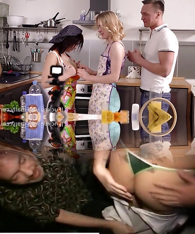 Horny Cooking Girls Suck Cum from a Huge Dildo While Getting Fucked by a Stranger