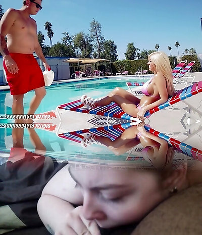 Outdoor Pool Sex with Big Tits Beauty