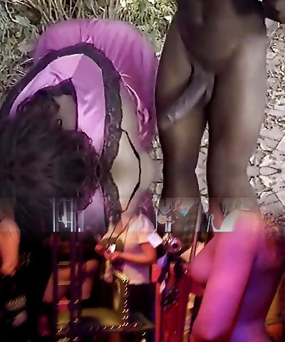 Horny Bitch Gobbles Giant Dick while Getting Fucked in Open Air