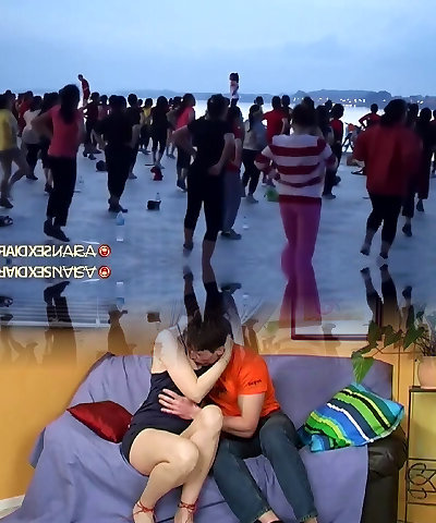 Public Porno: Hot Couple Getting Horny on Red Couch