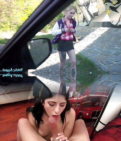 Sexy MILF Fucks Guy's Cock through Car Window in Public POV