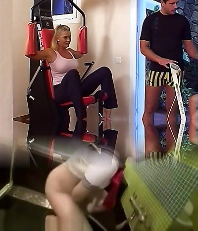 Horny MILF sucks and fucks at gym.