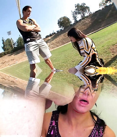 Horny Mature Cheerleader Gets Upskirt Blowjob Action